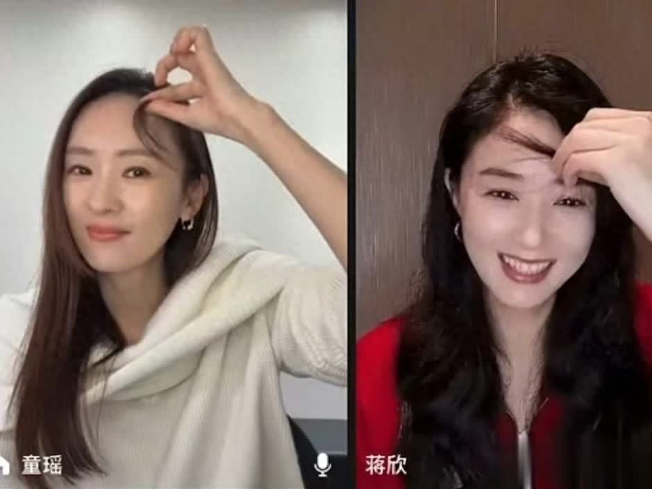 11月7日《四喜》开播前,童瑶与蒋欣在剧组直播连麦时上演了一场“无声”模仿秀。